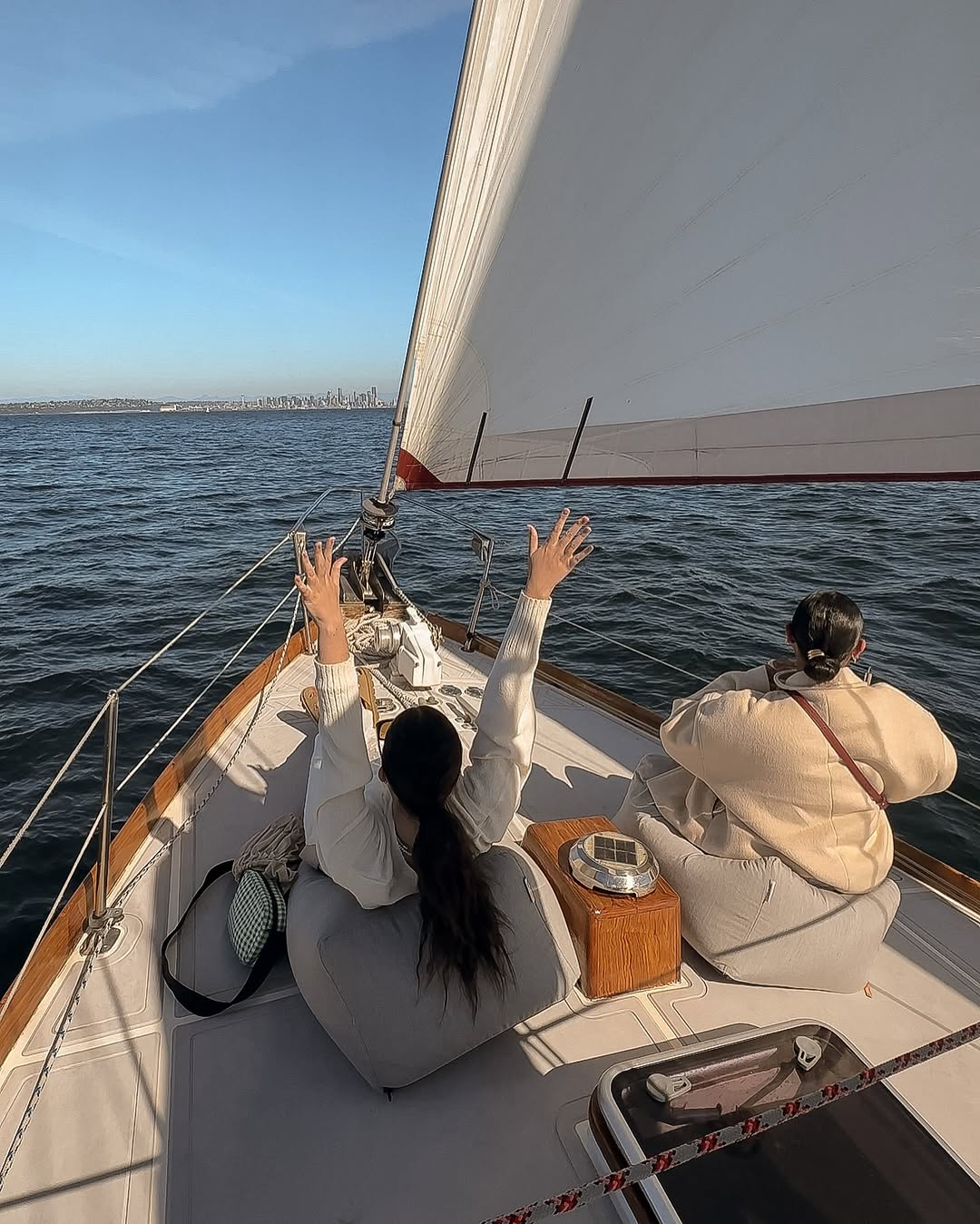 Bring a layer as it tends to be 10 degrees cooler on the water (we do provide wet-weather sailing gear).